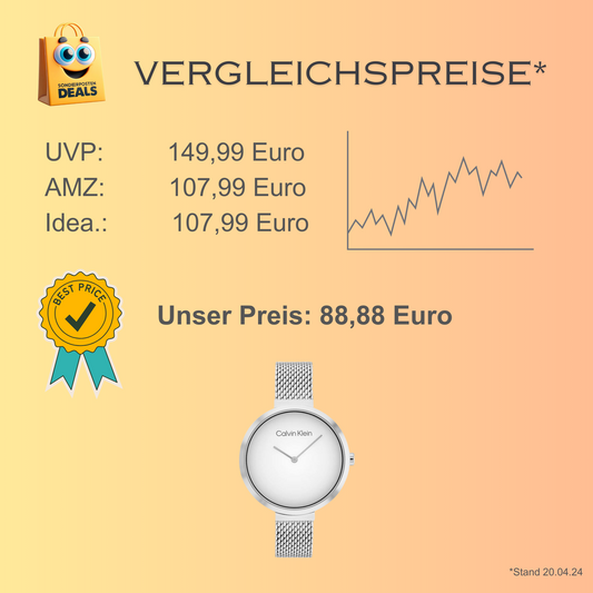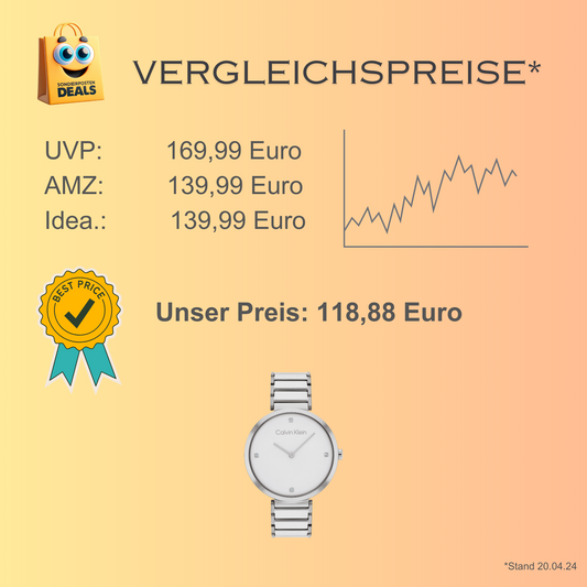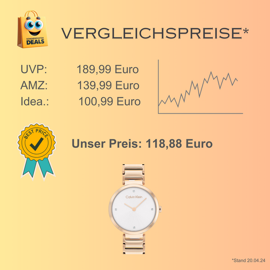 Calvin Klein elegante Uhr für Damen mit Edelstahlarmband – Zifferblatt mit Steinen versetzt