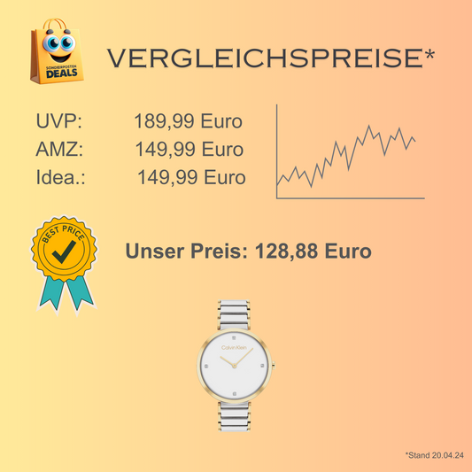 Calvin Klein elegante Uhr für Damen mit Zweifarbiges Edelstahlarmband – silber - gold