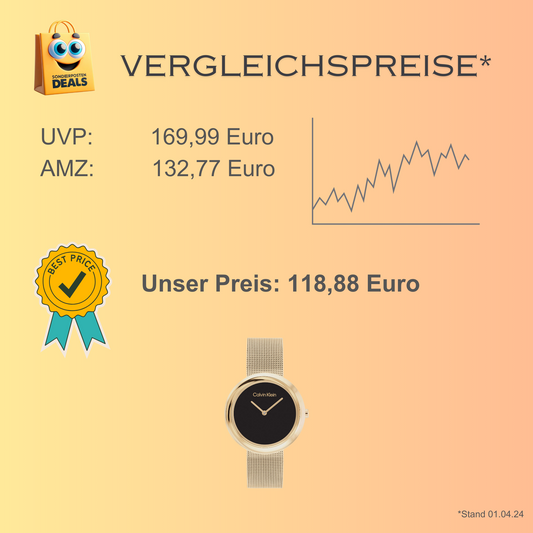 Calvin Klein elegante Uhr für Damen mit goldenem Edelstahlarmband – schwarzes Zifferblatt
