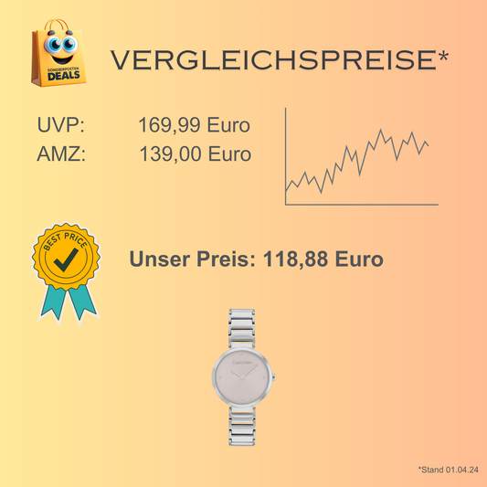 Calvin Klein elegante Uhr für Damen mit silbernem Edelstahlarmband – rosa Zifferblatt