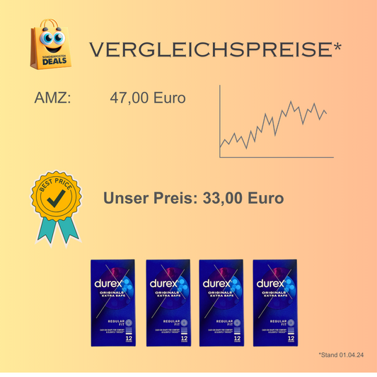 Spar Bundel – Set aus 4 Packungen Durex Kondome Extra Safe – 48 Stück - Verstärkte Latexkondome – normal Größe – Extra Safe und Extra Fun