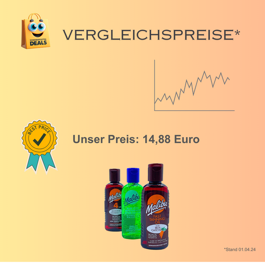 Malibu Travel Pack Sonnenlotion SPF4, Bronzer und After Sun Lotion in Reisetasche 3 x 100 ml