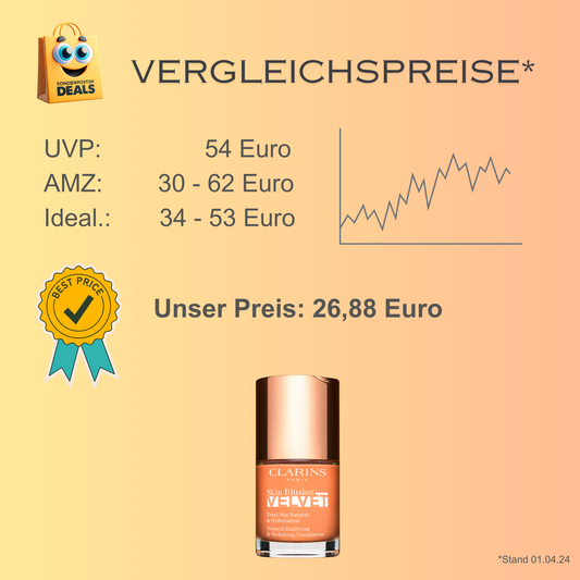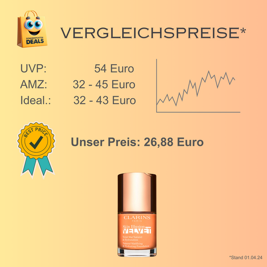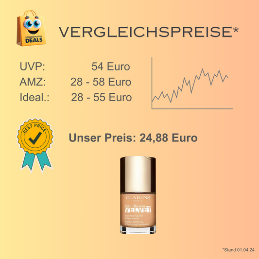 Clarins SKIN ILLUSION VELVET teint mat naturel & hydratation Foundation Make-up Nr.105N 3, 30 ml