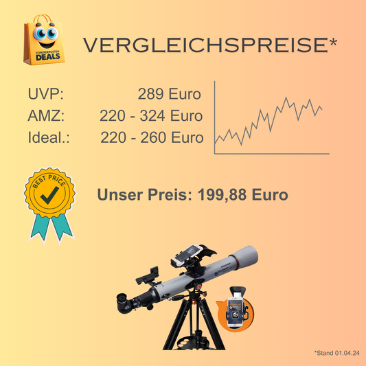 Celestron - Astromaster LT 70AZ mit Telefonadapter und Mondfilter