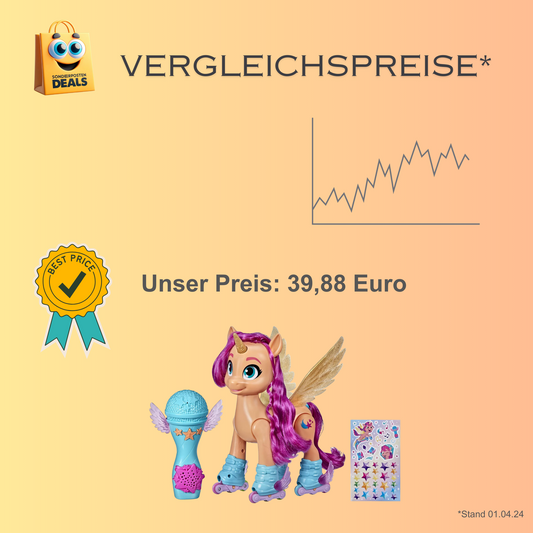 My Little Pony – Eine Neue Generation Sing- und Skatespaß Sunny Starscout – Pony (22,5 cm) mit Fernbedienung, 50 Reaktionen,